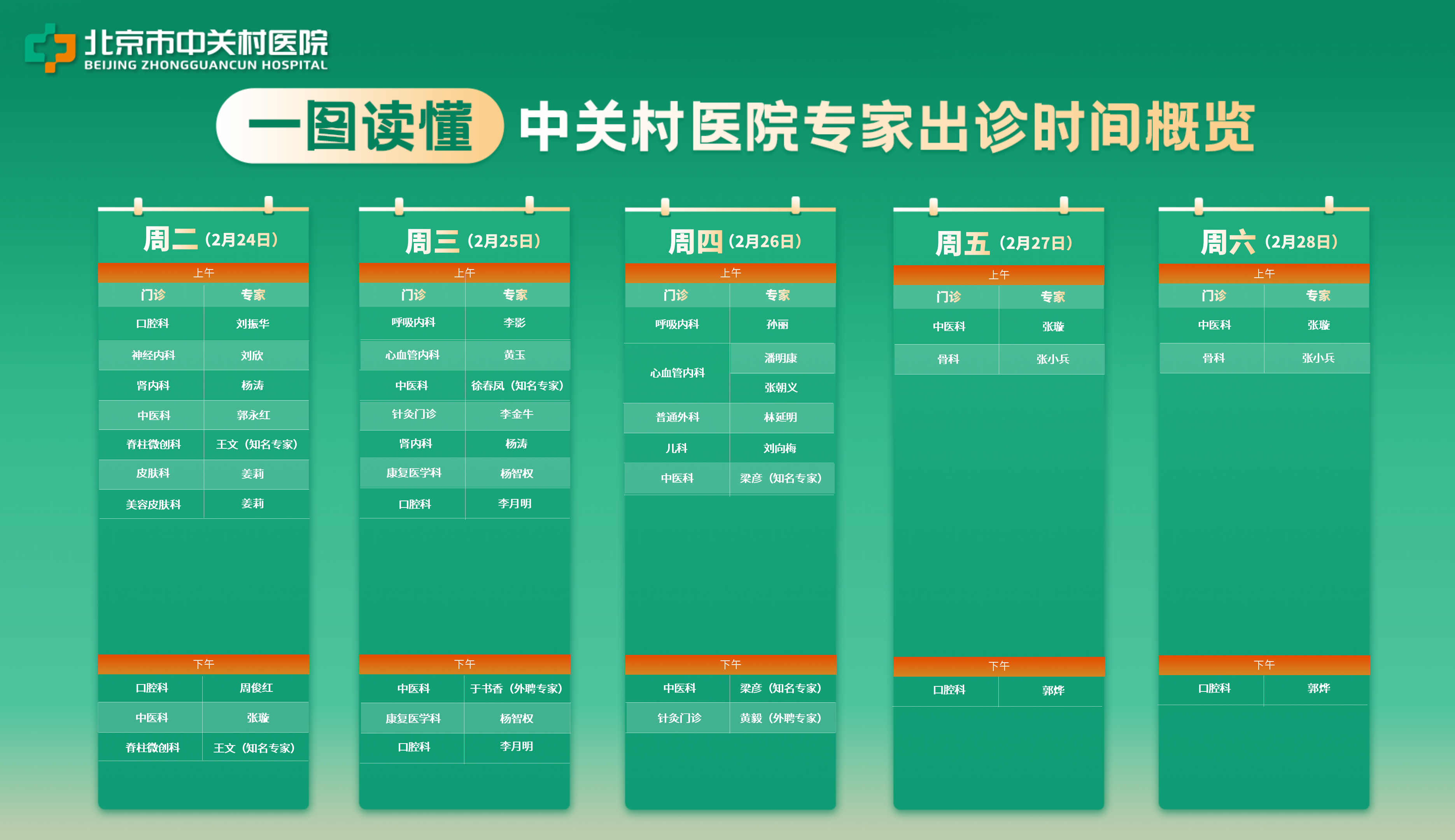 【专家出诊】2月24日至3月1日中关村医院专家出诊信息→